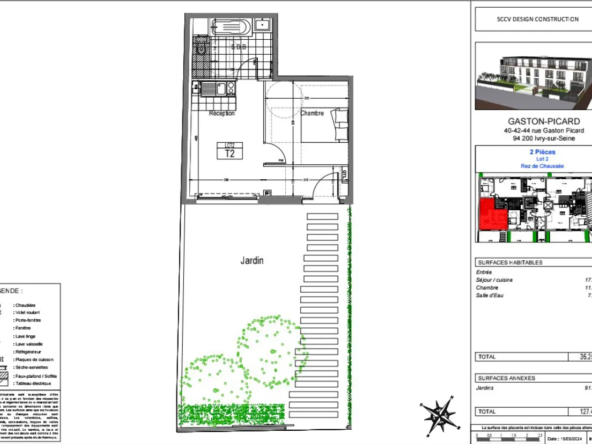 - La configuration de ce F2 comprend une chambre donnant sur un jardin, une salle de séjour, une cuisine séparée partiellement équipée, une douche, un WC, tout cela pour un prix attractif de 160 000 EUR ou un net vendeur à 150 000 EUR.