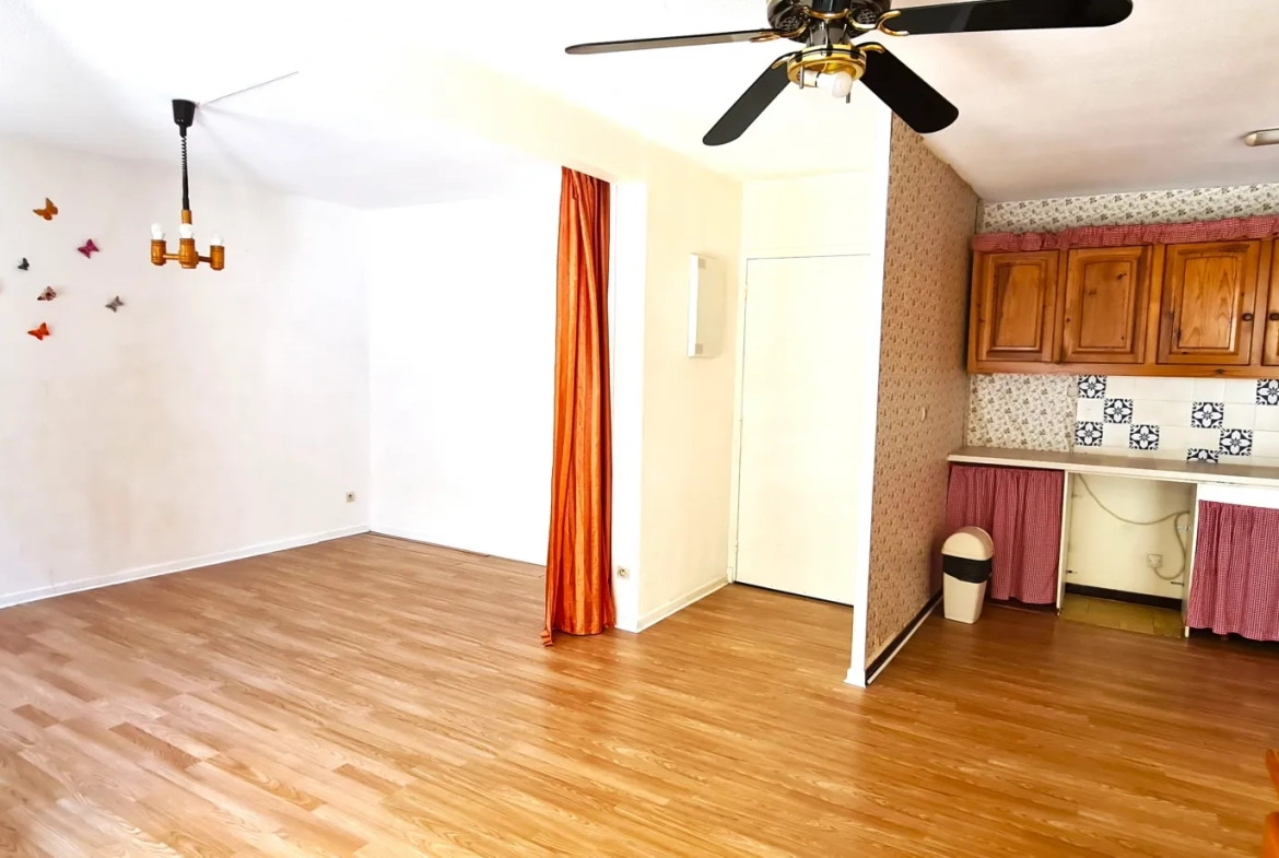 Appartement F2 loué avec parking et terrasse. Envie d’acheter un F2 avec terrasse et parking sans trop de charges de copropriété ? Ne cherchez plus, il est là ! Composé d’un double séjour/salon avec cuisine ouverte, d’une chambre avec placard et d’une salle d’eau. Le top, sa terrasse plein sud d’environ 20 m2 et le parking privé. Locataire en place depuis le 15 août 2022, loyer 375 + 25.