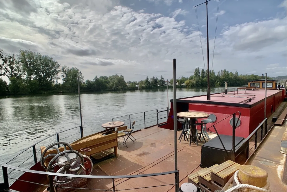 Vivez au rythme du fleuve dans cette belle péniche de 1930 non navigante. Calme et nature. D’une surface utile de 90 m2, elle a été rénovée en 2017 par un architecte. Elle offre une pièce de vie avec une belle hauteur sous plafond, des puits de lumière et un poêle à bois. De chaque côté, il y a 2 chambres, une salle d’eau, des toilettes, une buanderie ainsi que la timonerie réhaussée qui bénéficie d’une magnifique vue sur la Seine. À l’avant, il y a une 3ème chambre, un cellier et un espace polyvalent pour le jeu, le rangement ou encore le bureau. Une belle terrasse complète cette propriété.