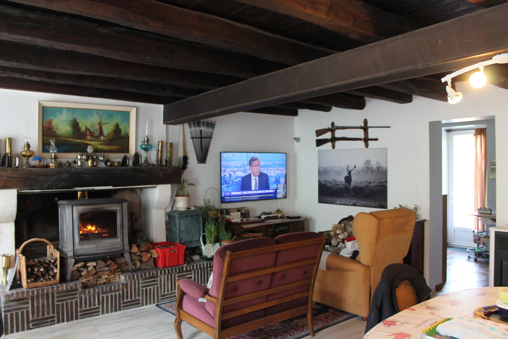 On entre dans la maison par le salon/salle à manger. Derrière le salon se trouve une buanderie avec un sol en tomettes donnant accès à la terrasse derrière la maison. C’est également ici que se trouve le magnifique terrain de 4000 m2 qui descend vers un petit ruisseau. À côté de la buanderie se trouve la salle de bain avec douche et toilettes, rénovée en 2021. À l’avant de la maison, une chambre à coucher est attenante au salon. Par le couloir où se trouve une autre chambre, on accède à la cuisine. Celle-ci se trouve dans l’extension de 18 m2 réalisée en 2021, avec une porte à l’avant. Les meubles de la cuisine sont donc très récents et elle est équipée de tous les appareils encastrés, avec une chauffe-eau de cuisine direct. À l’extérieur, à côté de la maison, il y a un nouveau double garage en bois de 30 m2 avec portes électriques, et encore de l’espace pour un atelier. À côté se trouve un autre petit abri pour ranger les outils de jardin. Attenant à la maison se trouve une petite extension qui était autrefois un four à pain avec un plafond arrondi en parfait état. Tout l’étage supérieur peut être transformé en plusieurs pièces, il y a déjà une lucarne avec un volet roulant électrique. La maison a du double vitrage partout, en partie PVC et bois, une toiture récemment isolée, le salon et les chambres sont en parquet stratifié au sol, le chauffage est assuré par un poêle à bois et des radiateurs électriques. L’enduit extérieur est fait en 2022. La fosse septique est aux normes. La propriété est située sur une petite route sans issue avec 2 autres maisons à l’extérieur d’Urçay et à seulement 20 minutes de la plus grande ville de St Amand Montrond. Idéal en résidence principale ou pour faire une belle maison de vacances près de la Forêt de Tronçais.