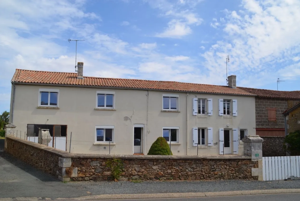 A 5 minutes from La caillère St Hilaire, Ref: 1765V. 2 housing units that can be rented or combined. Currently there are no tenants, but the rents were €540/month for one and €340 for the other. 1st housing of approximately 75m2 of living space including: on the ground floor: entrance to the kitchen, pantry, toilet, laundry room, basement cellar. Upstairs: landing, 2 bedrooms, toilet, bathroom. 2nd housing of approximately 145m2 of living space: independent entrance, living room with fireplace, fitted kitchen, pantry, storage room, bathroom, toilet, large garage with access to 2 attics. Upstairs, landing, hallway, 4 bedrooms, office. Outside: courtyard, land, 2 stone outbuildings, non-attached garden. All on plots of approximately 2306m2 including 1458 m2 of non-attached and non-buildable garden. Roof redone 5 years ago on the house, PVC double glazed windows. I invite you to visit because there is great potential. This project is waiting for you.